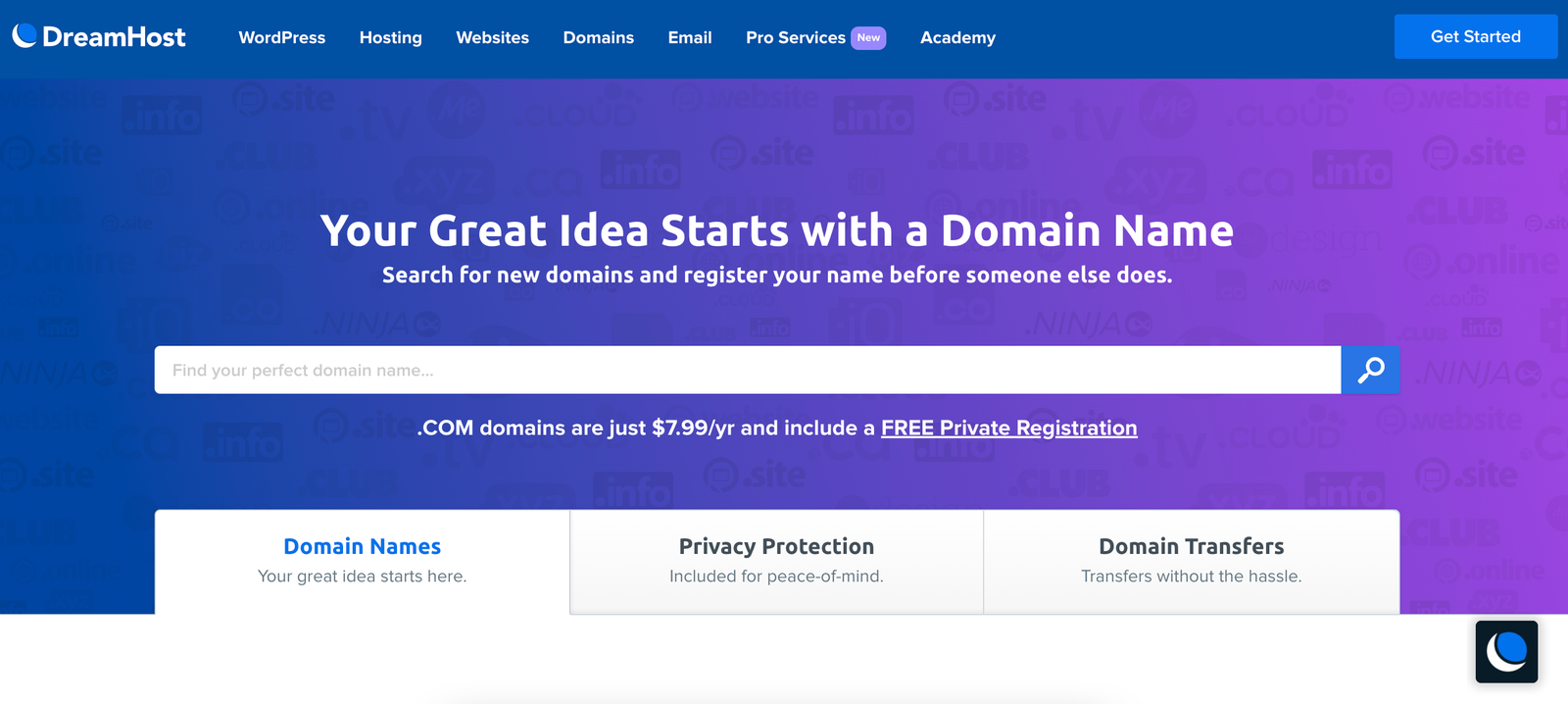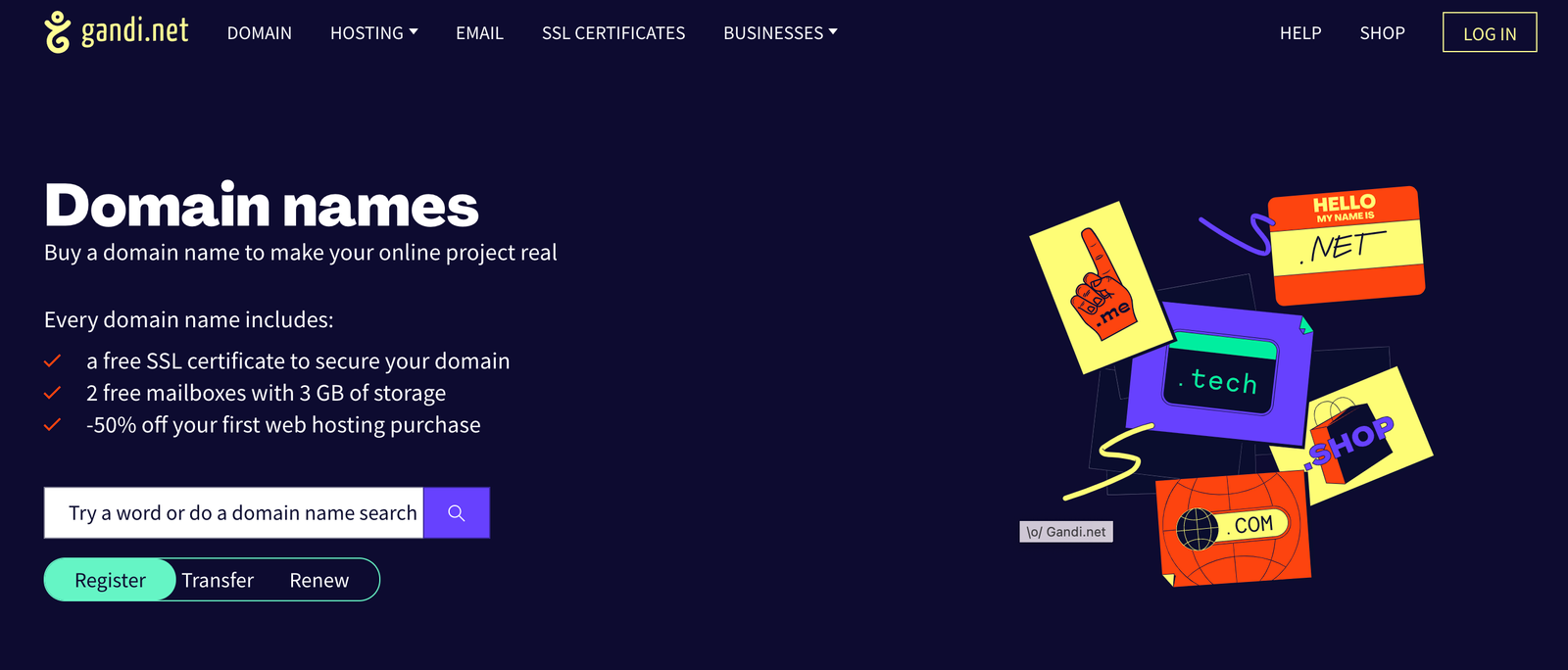 Domain.com is a platform where you can buy domains, web hosting or transfer your existing domain names.