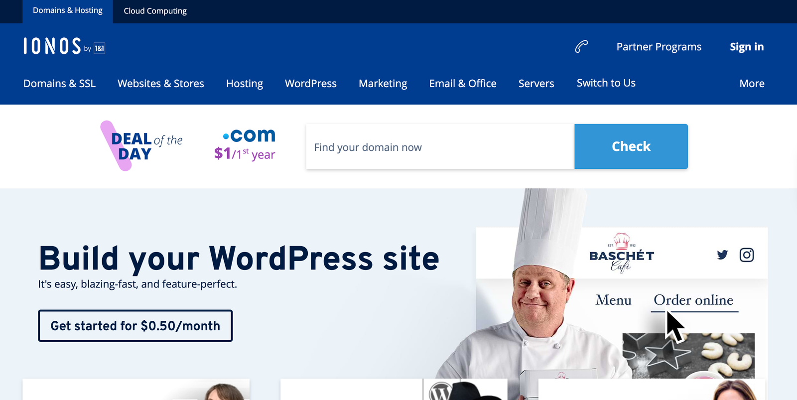 IONOS is another best domain registrar for individuals and businesses (free if you sign up for two years).