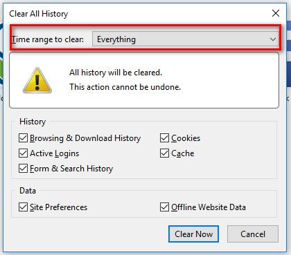 Once you chose your option, press on Clear Now button and Firefox will clear all the Browsing History just in a second.