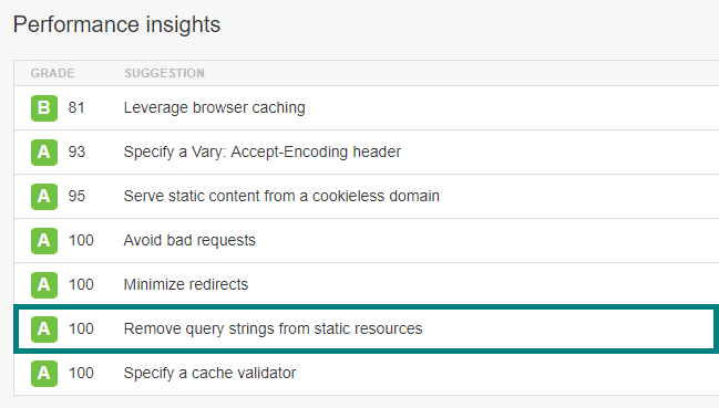 Removing query strings from static resources is important since if they remain, they can cause caching issues. Certain proxy caching servers and even some CDNs cannot cache static assets with query strings, resulting in a large missed opportunity for increased speeds.
