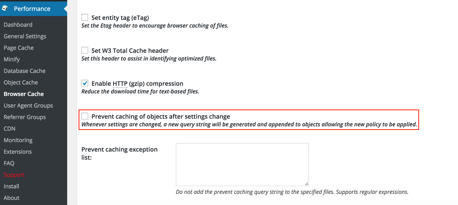 And if you are using W3 Total Cache plugin plugin, you need to enable an option to sort this issue. This option can be found by navigating to the W3 plugin Performance tab > Browser Cache. Within the General section of this page there is an option called “Prevent caching of objects after settings change”.