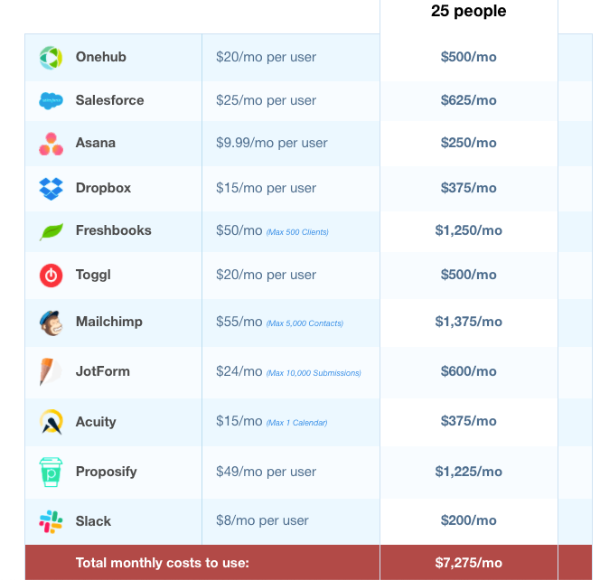 If you compare SuiteDash pricing with other business management tools, you can see that you will save a lot. You can see the image below, where I show the cost for 25 users.