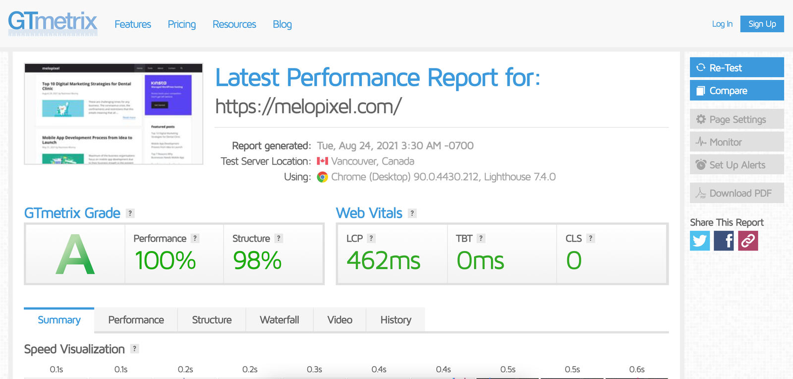 And if you have doubts, you can verify it at this link: https://gtmetrix.com/reports/melopixel.com/q1ex6P0n/