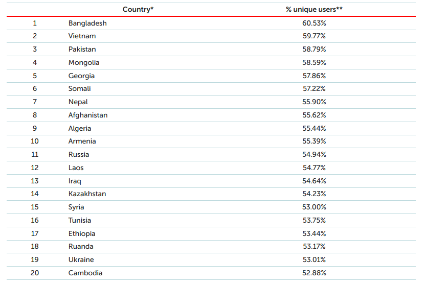 Even Kaspersky said 89% of notifications on blocked web attacks were triggered by attacks coming from web resources located in 10 countries.