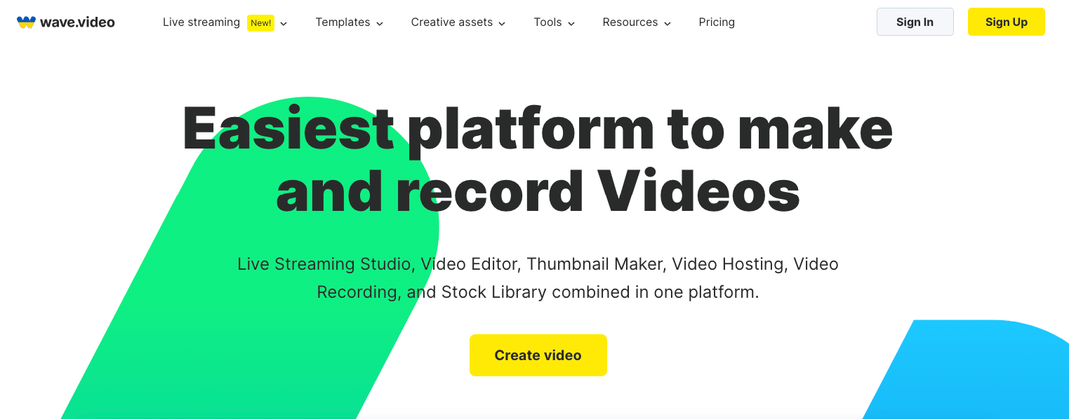 Wave.video is a cloud-based video maker that allows users to create, edit, and publish videos. It offers a user-friendly interface with drag-and-drop features, customizable templates, and an extensive library of stock videos and images.